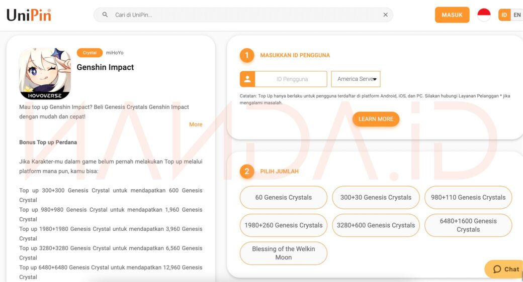 #1. Buka web UniPin.com, masuk ke halaman top up Genshin Impact.
