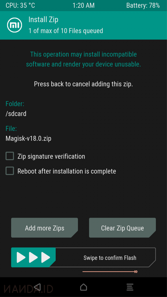- Download file .zip Magisk -> Magisk v18.0.zip