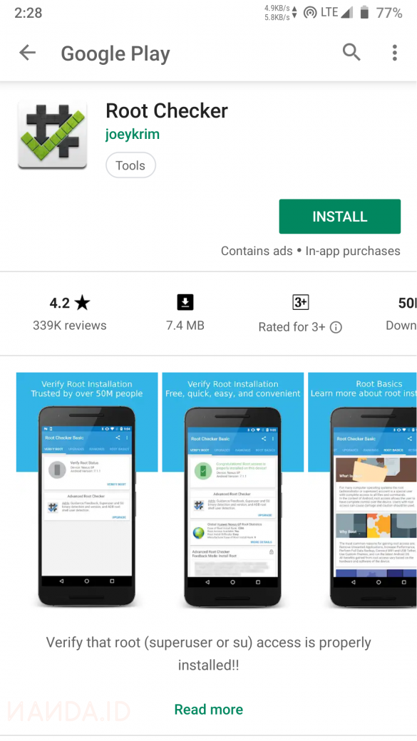 Jika masih belum yakin smartphone kamu sudah ter-Root atau belum, kamu cukup mendownload aplikasi bernama Root Checker di Google Playstore, untuk mengecek Smartphone kamu sudah ter-Root atau belum.